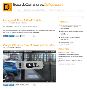My new blog is up. EduardoColmenares:DisAggregate is a site of my observations on security and privacy, wordpress hacking, and CSS. Go: EduardoColmenares:DisAggregate.