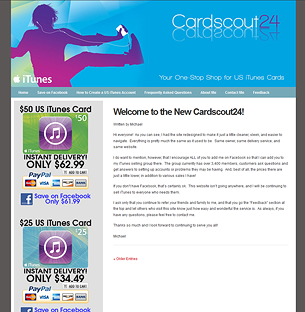 Complete revamp for the iTunes card resell sites Cardscout24.us, and Buynbye.org. Much better. Go: Cardscout24.us, Buynbye.org.