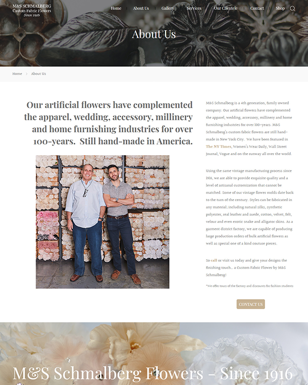 One of my favorite company websites that I continue to update, M&S Schmalberg is a 4th generation, family owned company that creates artificial flowers