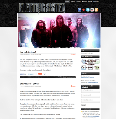 WordPress site for Electric Sister, a kick ass rock band out of Oakland California. Go: Electric Sister