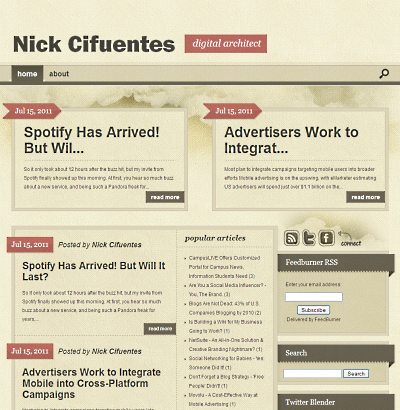 Wordpress site for Nick Cifuentes, a social media blogger in San Francisco. Go: Nick Cifuentes